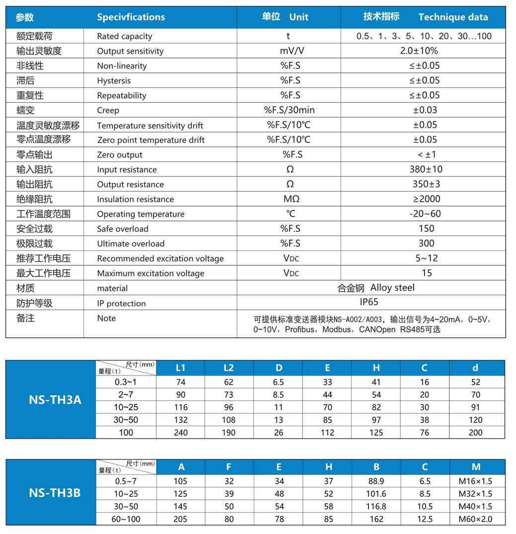 输出:1mv/V、0~±5/10V、4~20mA可选